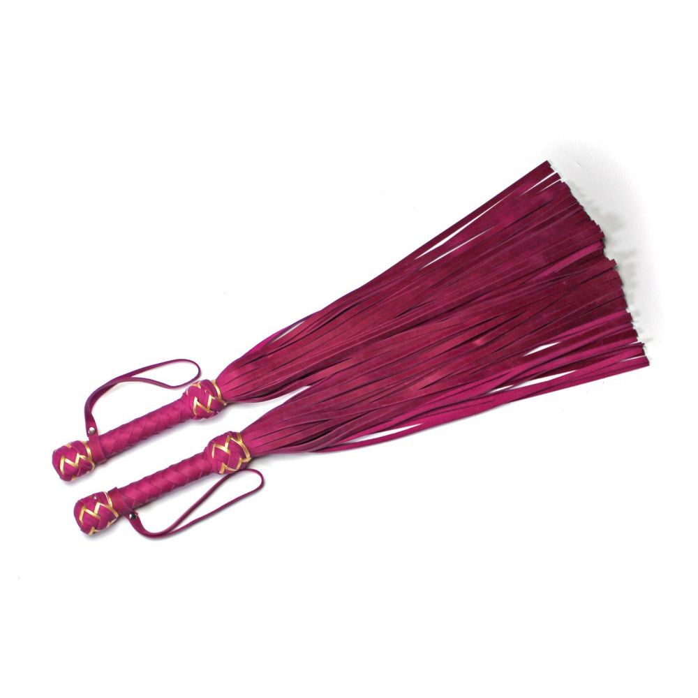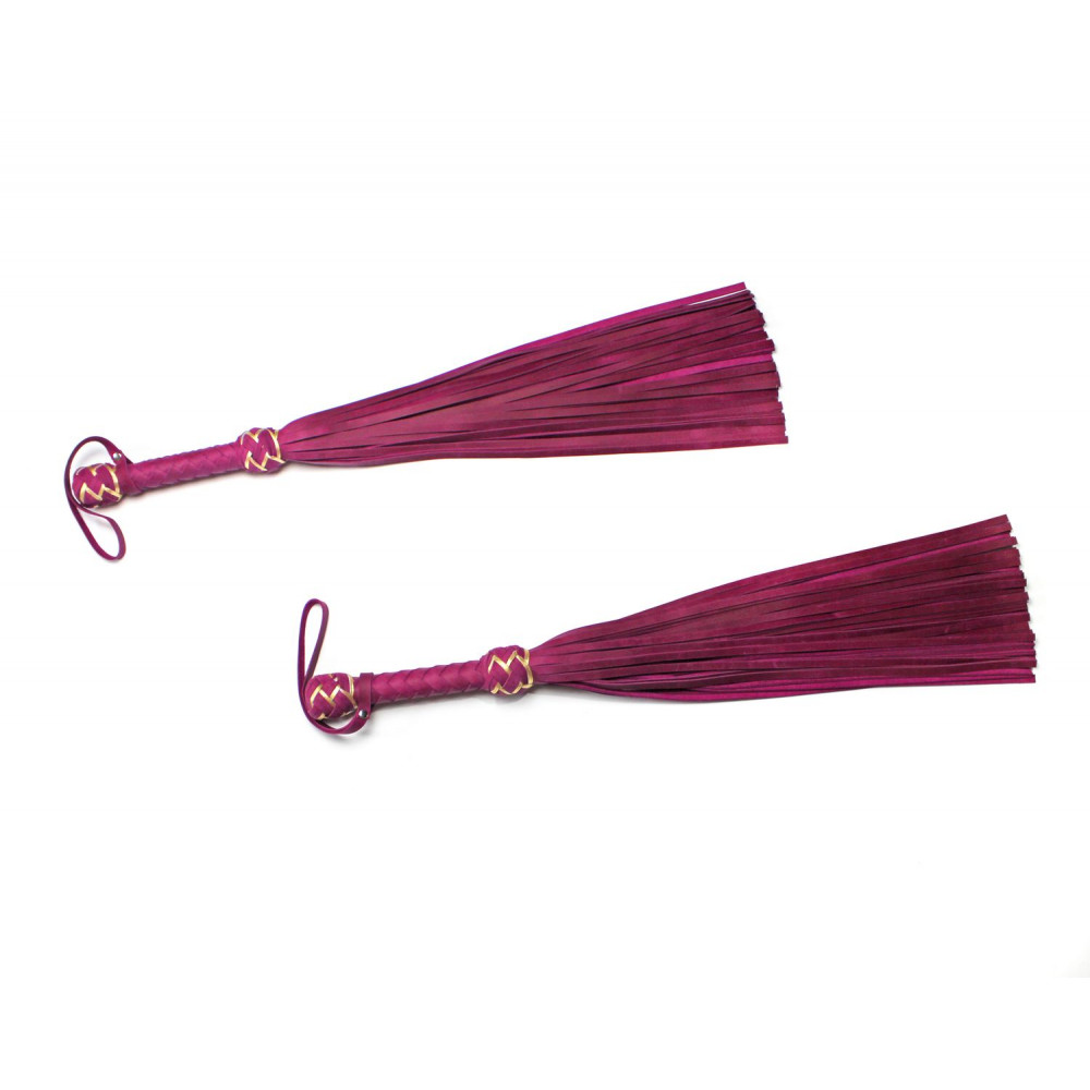 This flogger is made of beautiful fuchsia leather with golden highlights.